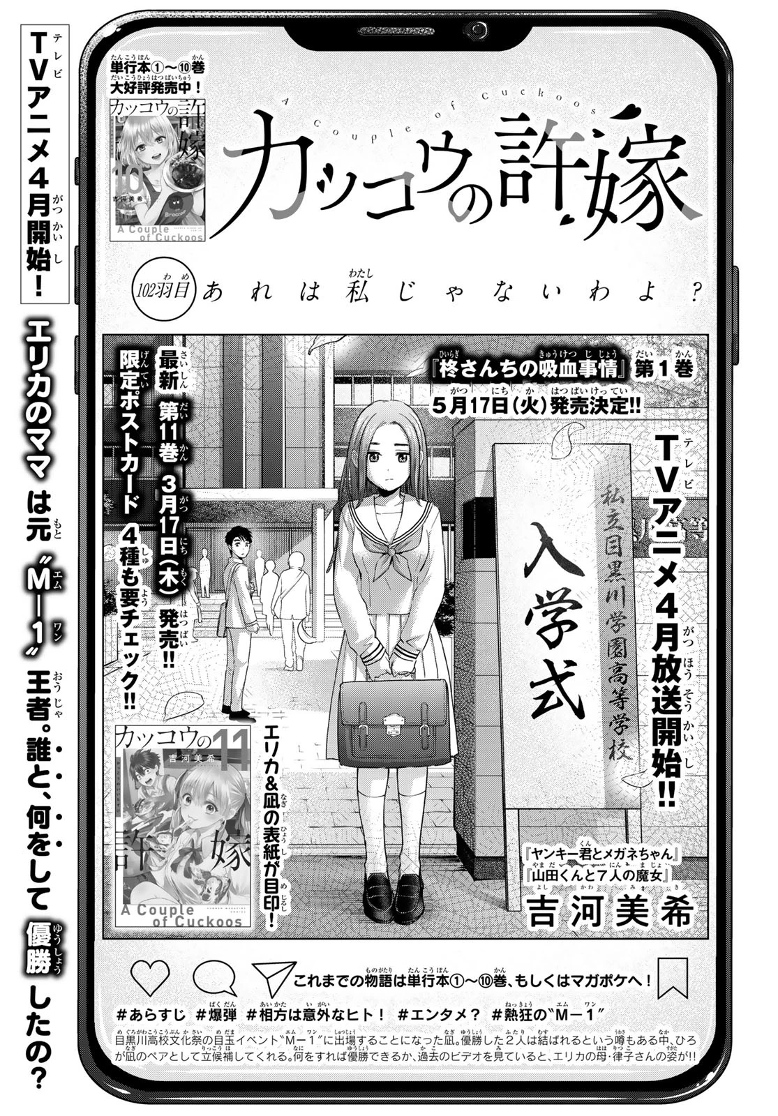 "You Know That Wasn’t Me, Right?" is the one hundred and second chapter of The Cuckoo's Fiancee manga series.