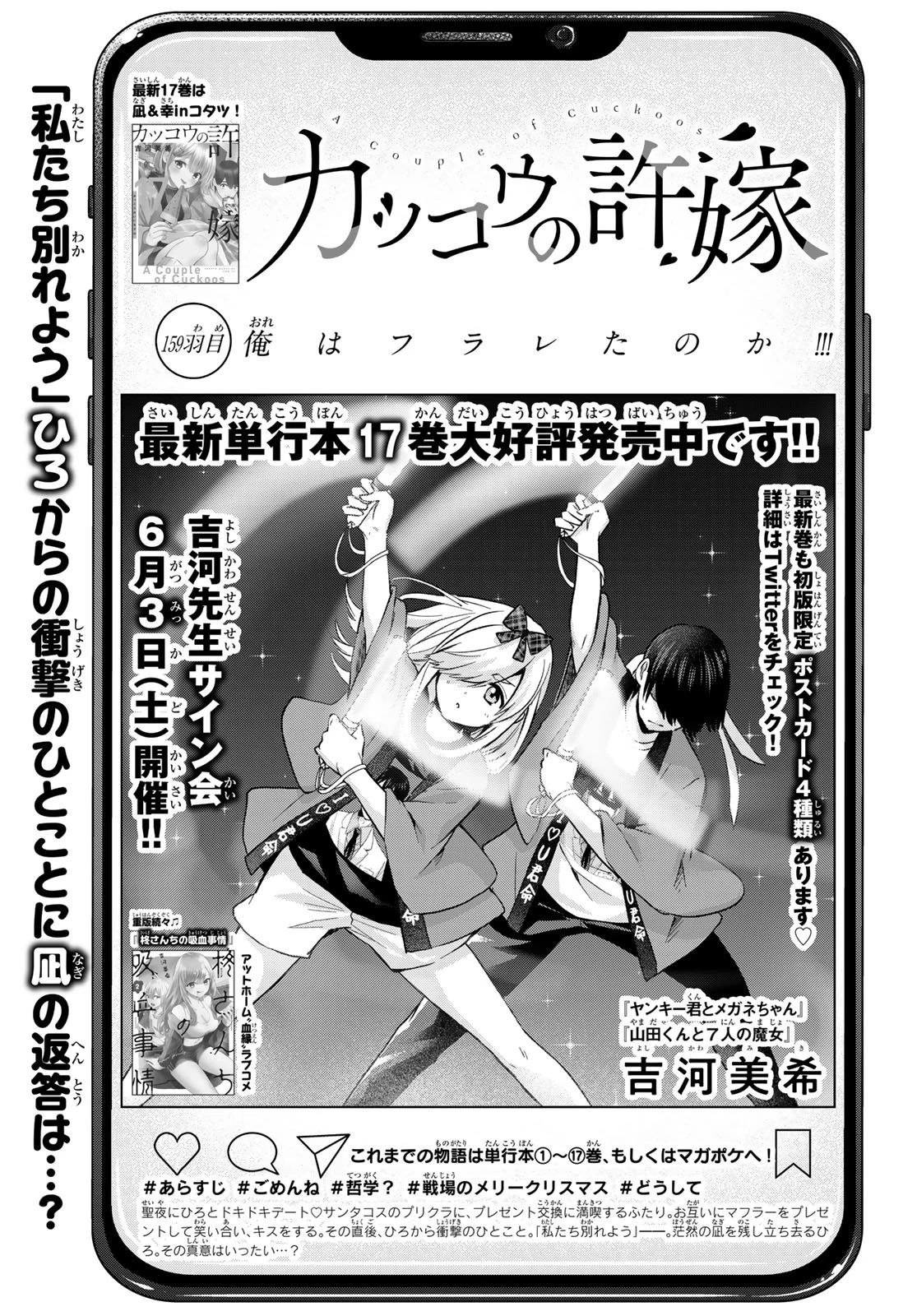 "I Got Dumped?!!" is the one hundred and fifty-ninth chapter of The Cuckoo's Fiancee manga series.
