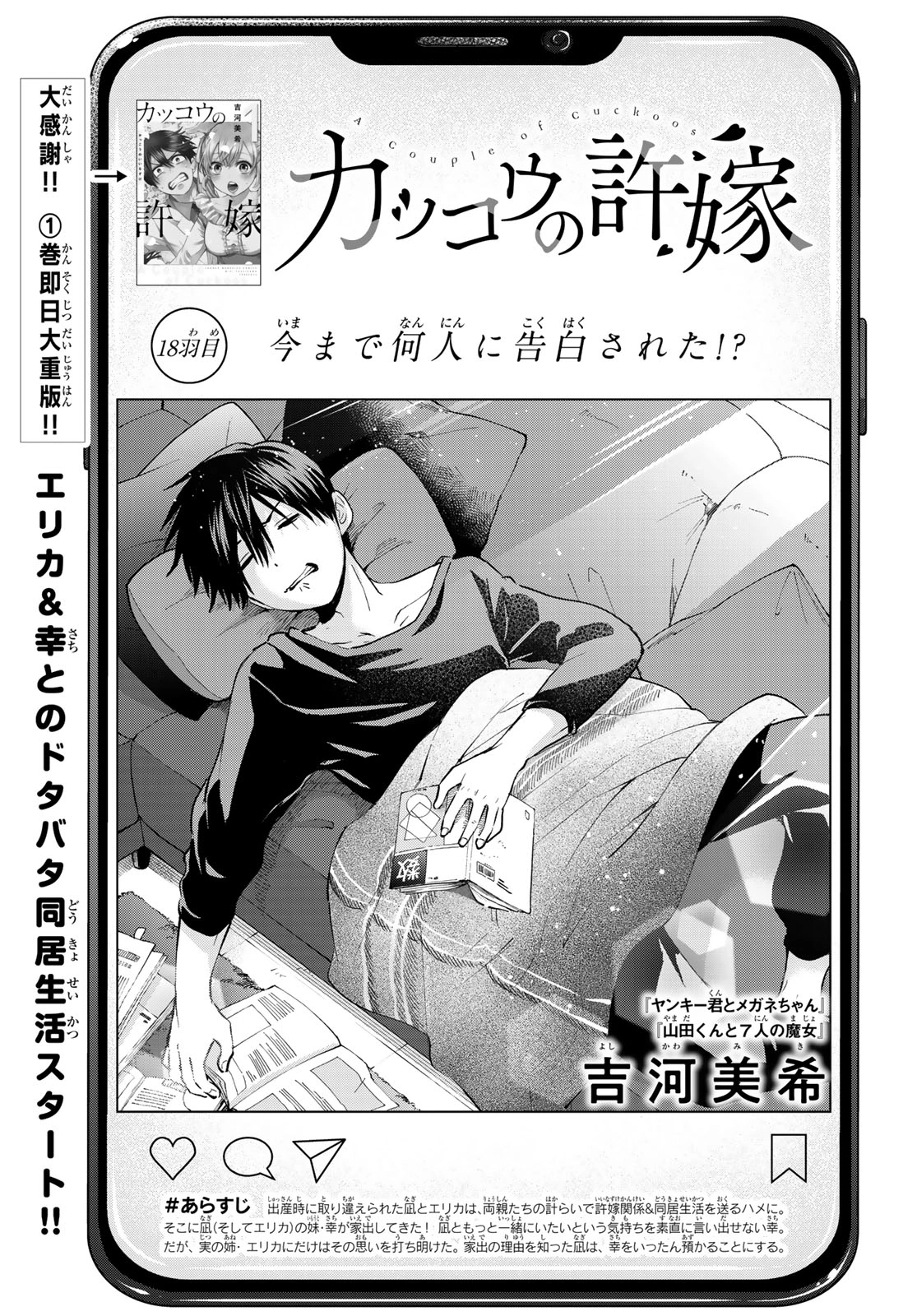 "How Many People Have You Had Confess to You!?" is the eighteenth chapter of The Cuckoo's Fiancee manga series.