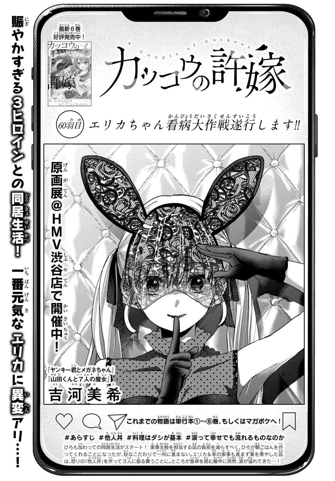 "Execute Operation: Nurse Erika-chan Back to Health!" is the sixtieth chapter of The Cuckoo's Fiancee manga series.