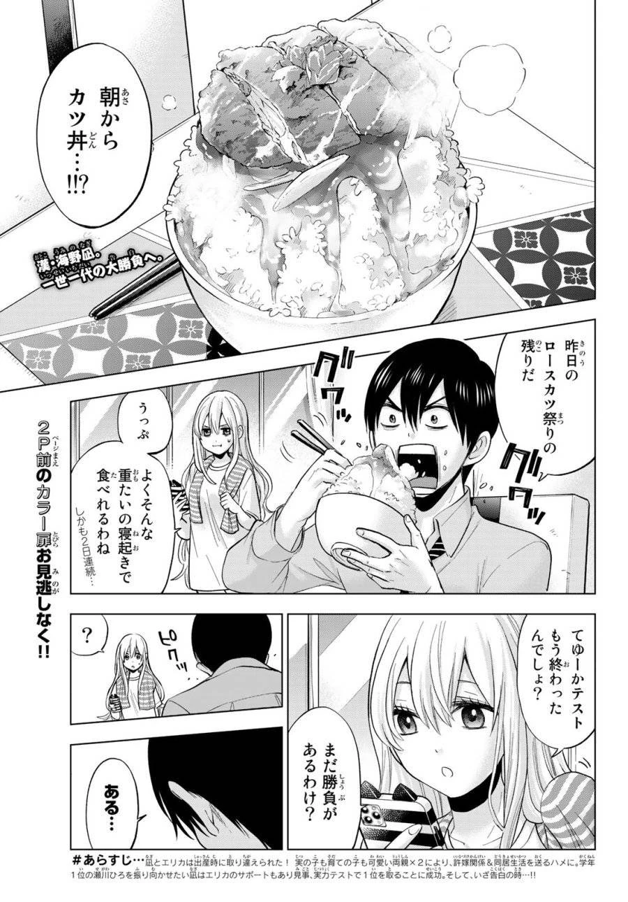 A few mornings defeating Hiro in the recent aptitude test, Nagi eats a hearty breakfast and prepares to confess to Hiro today. After Nagi left, Erika mentioned that she forgot to tell Nagi about something.